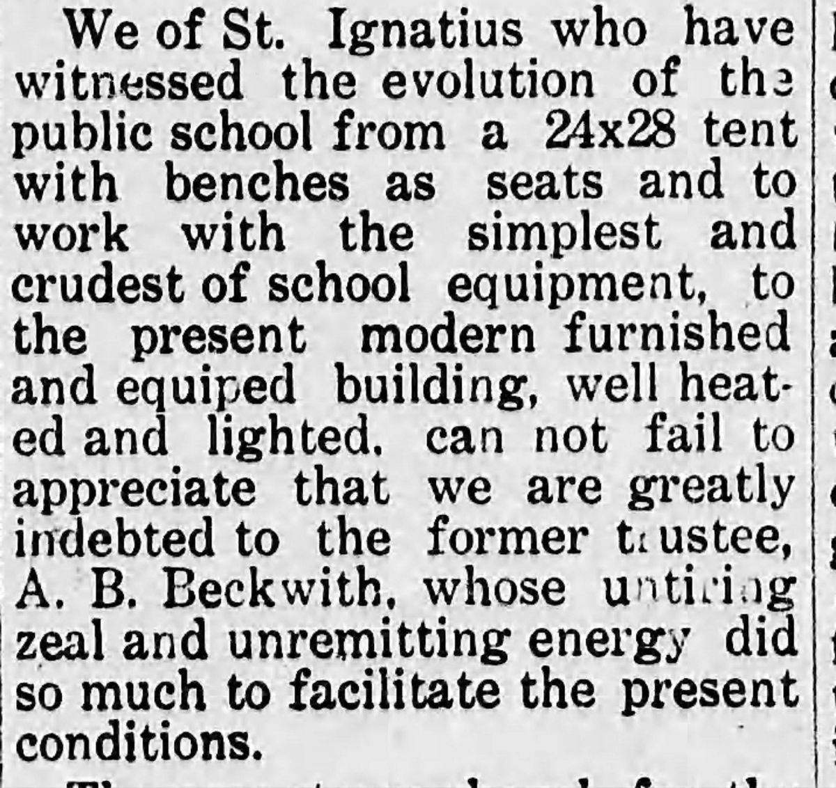 This archive showcases historical newspaper articles referencing the Town of St. Ignatius and its vicinity. We strive to furnish each photograph with information, yet sometimes specifics can be scant. Should you encounter any inaccuracies or possess further details we might not have, kindly reach out by clicking the 'report a problem' button on the homepage and choosing 'website support'.